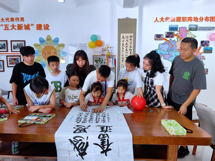 为充分发挥人大代表和驻村选调生作用,关心关爱辖区困境少年儿童,8月1日,在天马镇人大代表之家,天马镇人大代表文明乡风志愿服务队联合镇驻村选调生乡村振兴服务队,以“共书未来、共话明天”为主题开展暑期少年儿童关爱活动。部分市镇人大代表和爱心人士为天马镇二郎、向荣等社区的16名困境少年儿童送温暖,助力孩子们健康快乐成长。