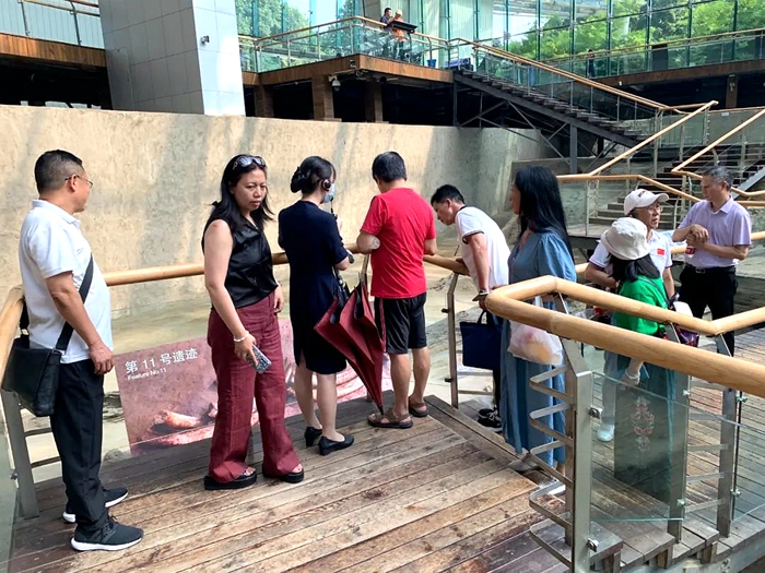 “金沙采风”小组人员一行按照金沙辖区内“馆、体”旅游动线,实地走访金沙演艺综合体、同怡社区、清江西路商业街及西单商场等商务楼宇,并在金沙遗址博物馆听取金沙古蜀文明挖掘、传承等相关工作情况介绍。在座谈交流环节,参会人员就“金沙”的来源文化、金沙古蜀文化的文创推广、新时代金沙文化助力申遗等方面进行交流分享。