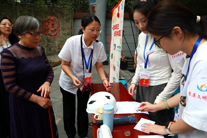活动精选宜宾市宪法主题公园中宪法之路、宪法树、宪法之门、宜宾法治故事等4处打卡点“学宪法,畅民情,明法理”,并设计有精美的限量主题明信片作为“集章地图”。活动中,市民朋友从宪法之门出发,一路探访学习习近平法治思想、宪法发展历程、公民权利与义务、地方性法规宣传等内容,经4个打卡点听取工作人员讲解宪法知识,或通过回答宪法知识问题获得点位专属印章,集齐4枚印章便可获得活动提供的纪念品。此外,集章使用的明信片上精心印制了宪法主题公园地标建筑,作为活动纪念,深受市民朋友喜爱。