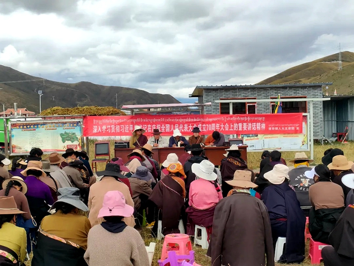 近日,色达县各级人大代表积极响应县人大常委会的号召,纷纷表示:要深入学习贯彻落实习近平总书记关于坚持和完善人民代表大会制度的重要思想,深刻领悟“两个确立”的决定性意义,自觉做到“两个维护”,坚定不移走中国特色社会主义政治发展道路,坚持好、完善好、运行好人民代表大会制度。同时将学习贯彻人民代表大会制度70周年大会上重要讲话精神的热潮带到了最基层的每一个角落——丰收的田间地头,辽阔的牧场,村级活动室等,都弥漫着浓厚的学习氛围。