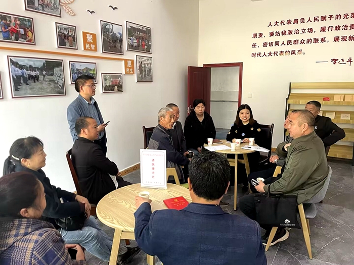枝叶关情,小站点提供大服务。坚持“走进来”接访和“走出去”履职相结合,拓宽代表履职渠道,让小阵地彰显大担当。一方面组织人大代表进家入站,常态化开展“代表接待日”活动,认真倾听群众心头事,坚持在站宣传政策、答疑解惑、化解矛盾等,充分发挥代表家站主阵地的作用。另一方面鼓励人大代表走出去,深入基层一线、深入人民群众,通过“板凳会”“院坝会”“话家常、促膝谈”等方式与群众点对点宣传、面对面交流,收集传递群众意见建议,立足本职为人民群众做好事、办实事、解难事。