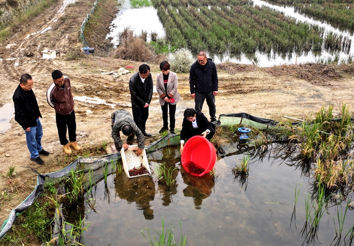 发挥代表专业优势,为乡村振兴助力添彩。冬季是早虾管护的重要时期,在长宁县龙头镇龙华村稻虾高产高效示范基地,投放虾苗、饲喂、清理稻虾田等工作正如火如荼地进行,农户们忙碌的身影随处可见。