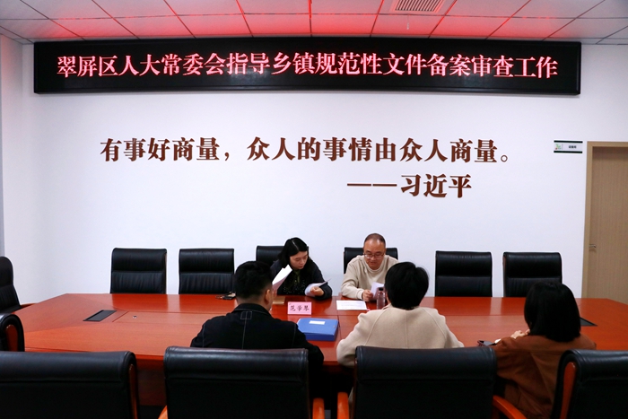 备案审查工作是保障宪法实施、维护国家法制统一的重要制度,翠屏区人大常委会积极探索,从建立机制、规范流程、强化督导、加强培训等多方面提升备案审查能力,努力实现“有件必备、有备必审、有错必纠”。