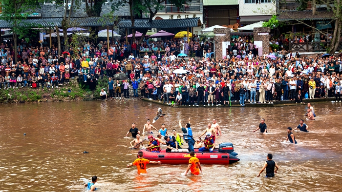 夹关本土传统民俗“3.28抢红鸭”活动自疫情发生以来已沉沦4载有余,镇人大代表在履职过程中了解到群众对于举办本土民俗文化节的渴望,民意所趋,我必随之,在夹关镇党委政府和镇人大的筹备下,一场引爆夹关灾后重建后时代的“夹关古镇·鸿运峡”民俗文化节迎来了蝶变后的“首秀”。为助力镇党委政府办好这场全镇人民期待已久的传统民俗文化活动,镇人大代表积极“沉”入各人大代表“家站点”,推动民情民意“浮”上来,人民群众喜闻乐见的马马灯、牛儿灯、狮子灯、列入四川省非物质文化遗产名录的夹关高跷、堪称“川西婚庆民俗活化石”的“送彩”等民俗活动相继列入民俗文化节节目单。为保障“夹关古镇·鸿运峡”民俗文化节活动顺利开展,夹关镇人大发动人大代表积极参与节日期间景区治安巡逻和志愿服务保障工作。活动期间,出动人大代表300余人次,服务游客达6000余人,为护航民俗文化节贡献了人大力量。据统计,“夹关古镇·鸿运崃”民俗文化节期间共接待游客约17万人次,带动全镇商家群众实现旅游总收入约1300万元,打响了烟火夹关文旅产业腾飞的第一枪。