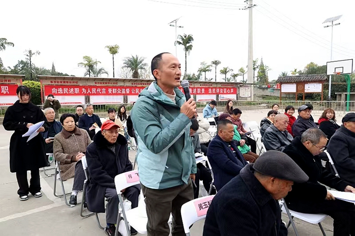 会上,东方社区选区13名人大代表中的4名代表进行口头述职,其余9名代表进行书面述职。4名口头述职的代表分别是市人大代表、镇人大代表赖均勇,区人大代表、镇人大代表张喆中,区人大代表彭家秀,镇人大代表穆玉良。4名代表均结合自身本职工作,就辖区走访、群众接待、推动解决民生问题、代表建议等内容向选民据实报告了履职情况、存在不足和明年的努力方向。