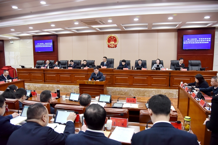 (图为区三届人大常委会二十五次会议上听取和审议区人民法院落实审议意见情况的报告)