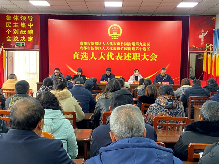 每年12月是新都区“直接选举人大代表述职月”,旨在让人大代表能够直接与选民交流,听取选民的意见和建议,加强代表与选民之间的联系,确保人大代表能够真正代表人民的利益。该区人大常委会按照“统一谋划、每年实施、代表述职、选民评价、整改反馈”程序精心安排部署,细化制定实施方案、述职流程图,及时通知动员人大代表撰写述职报告,采取集中述职和代表分批次回选区述职相结合,口头面对面述职与书面述职相结合的方式,统筹做好此次述职评议工作。通过“新都发布”微信公众号、各镇(街道)微信公众号加大述职评议工作宣传力度,全覆盖营造述职评议工作的良好氛围。推行代表中的党政领导带头述职、区人大常委会组成人员(镇人大主席团、街道人大工委)带头述职模式,区委书记王忠诚,副书记、区长魏柯等担任党政领导干部职务的人大代表以及人大常委会组成人员分别带头进“家”入“站”联系群众,向选民宣传党和国家的方针政策并报告履职情况,广泛听取群众的意见、建议,针对选民反映的偏远村组接送学生难、灌溉沟渠坍塌、散居院落污水处理等问题,协调有关部门制定解决措施,进一步畅通了民意反馈渠道,加深了与选区选民的沟通联系。