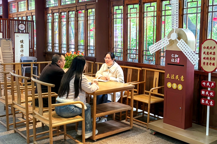 “仁和社区基层立法点常年有一支涵盖网格员、人大代表、行政部门、法律从业者的工作队伍,针对群众的疑惑,我们加强政策宣传,推动落实规定要求,目前已基本实现覆盖。”仁和社区居委会主任张影介绍道,“除了有专门的工作队伍,我们还通过多点设立意见采集箱、驻站法官宣传等方式推动立法联系点发挥作用。”