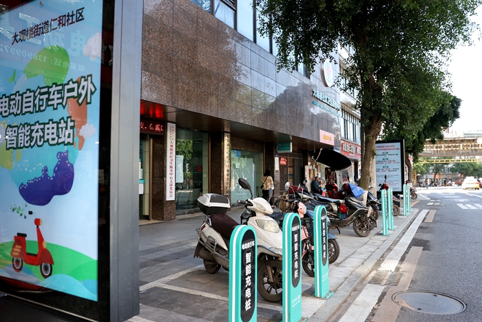 “现在路边就能给电动自行车充电,还新增了10多个非机动车位,骑车来店里上班更方便了。”临街店主张女士看着路边新建的充电桩很是满意。
