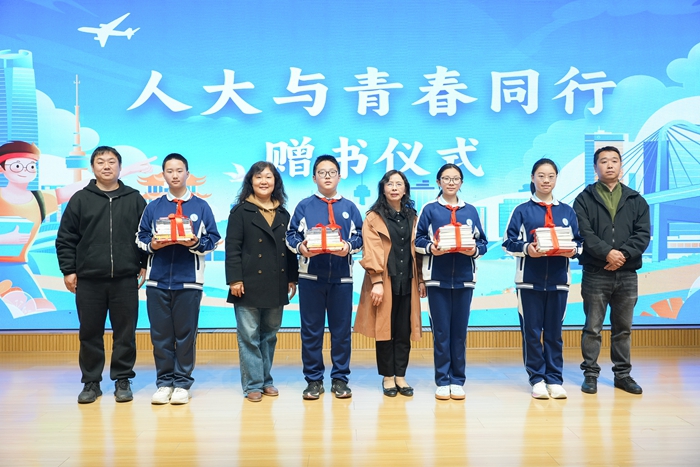 在庄重的赠书仪式上,人大九里堤街道工委主任杜军与田雪梅代表共同为同学们赠送《青少年法治教育读本》《人大制度图解手册》等书籍200余册。这些书籍特别采用漫画、案例分析等青少年喜闻乐见的形式,系统介绍了我国根本政治制度和公民权利义务。