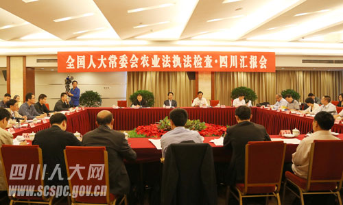 省委常委、副省长钟勉汇报了我省贯彻实施农业法的基本情况,省政府相关部门就发展现代农业、加强农业投入与支持保护、确保粮食安全、加强耕地保护、实施农业扶贫开发等情况作了补充汇报。