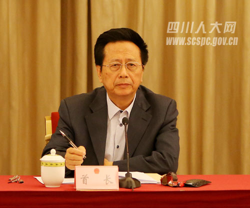 省人大常委会副主任、党组书记李崇禧主持汇报会。他表示,四川省人大常委会将农业法贯彻实施与全国人大常委会的中心工作、省委的决策部署以及人民群众关心的热点难点问题紧密结合起来, 依法履职尽责。一是不断加大农业法的宣传贯彻力度,增强依法治农、以法兴农意识,推进农业现代化建设。二是积极推动省委“两化”互动、统筹城乡总体战略的贯彻落实,以发展现代农业和农业产业化为重点,大力推动四川农业特色优势产业发展壮大,大力推进“再造一个都江堰灌区”、高标准农田、大中型水利工程等重大项目建设,促进农业稳定发展和农民持续增收。三是进一步加强农业法规体系建设,深入贯彻农业法,紧密结合地方实际,加强对农业技术推广、扶贫开发、水土保持、动物防疫、林木资源保护等配套法规的制定或修订工作。