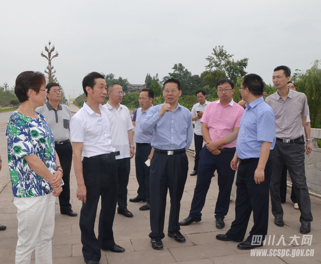 执法检查组查看大竹县护城河工程