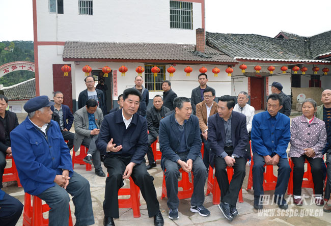 在达州市通川区碑庙镇陡坑村田边和贫困群众谈话