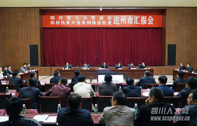 汇报会上,检查组听取了达州市贯彻实施《条例》的情况汇报。李向志指出,达州市对贯彻《条例》高度重视、措施得力,道路设施和基本公共服务建设、村容村貌、干部群众的精神状态有了极大的改变,老百姓克服了等靠要思想,检查组对问题整改落实情况总体满意。接下来要进一步增强责任感使命感紧迫感,强化领导责任、资金投入、部门协作,确保如期完成脱贫攻坚任务。各级人大要结合职能定位,找准服务脱贫攻坚的切入点和着力点,开展工作、履行职责,全面有效地服务脱贫攻坚。更加注重中央、省委决策部署和《条例》的学习宣传;更加注重精准扶贫、精准脱贫,防止扶贫工作中的形式主义;更加注重组织领导,加强基层基础工作;更加注重发挥贫困群众主体作用,不断激发内生动力,干部群众齐心打赢脱贫攻坚战。