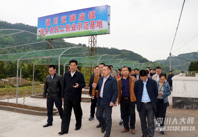 在达州市通川区碑庙镇返乡农民工创业示范基地察看