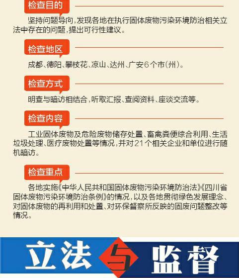 7月25日,省人大常委会执法检查组关于检查《中华人民共和国固体废物污染环境防治法》《四川省固体废物污染环境防治条例》(以下简称“一法一条例”)实施情况的报告,提请省十二届人大常委会第三十五次会议审议。