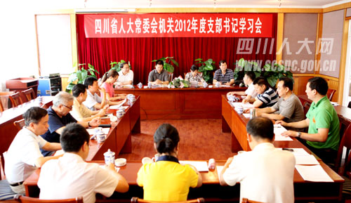与会同志逐条认真学习了新修订的《四川省〈中国共产党党和国家机关基层组织工作条例〉实施细则》,围绕抓党建、促工作进行了讨论和交流。办公厅人事财务培训中心支部书记郭志强同志交流了该支部在推进学习型组织建设活动中的经验和做法,党委委员、办公厅离退休人员工作处(干休三所)支部书记冯军同志介绍了离休支部17名老党员几十年如一日、忠诚党的事业、活到老学到老的感人事迹,人代工委支部书记弓继柏、机关服务中心支部书记段世平和退休一支部、三支部的两位支部委员就本支部结合实际开展创先争优、“三分类三升级”和“挂包帮”活动等方面的情况进行了交流。与会同志就如何进一步抓好干部职工思想政治工作、创新党建工作方式方法等提出了意见和建议。培训中心主任陈继伦同志介绍了培训中心十年来艰苦创业、不断发展壮大的情况。