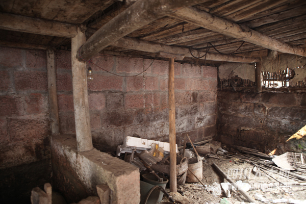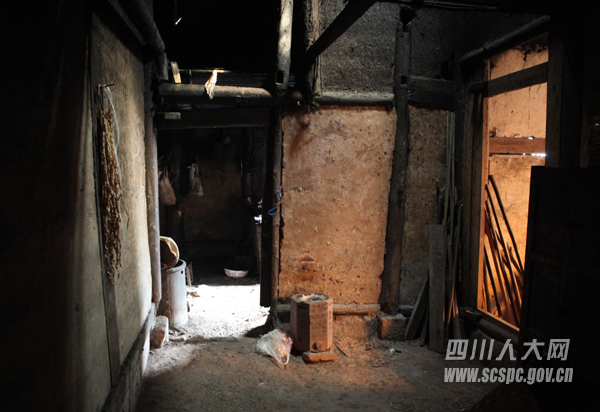 一座木瓦结构的旧房子里,承重的主要木柱子都倾斜了,尤其是那间破烂不堪的猪圈屋子,虽然用了几根原木来加强支撑住,但依然给人摇摇欲坠的感觉。