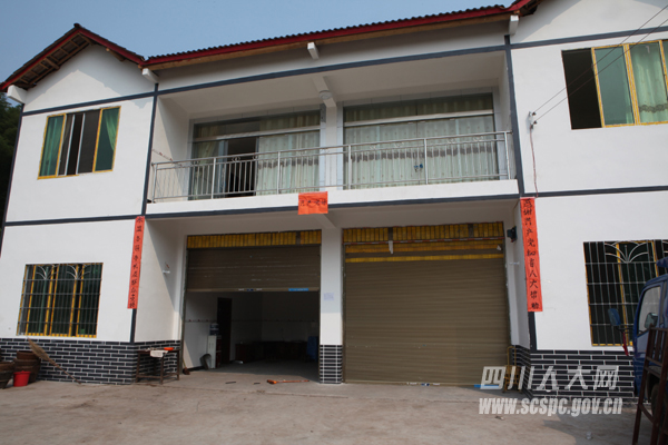 红屋檐、灰青瓦、雪白墙、落地窗帘、卷帘门。9月6日,记者看到,一座一楼一底的楼房在仲秋的阳光里特别显眼。几天前才贴在大门两侧的大红对联略略有点褪色,但上面的字依然清晰可见:“感谢共产党和省人大的帮助,承蒙各领导及群众支持。”横批:“共产党好”。