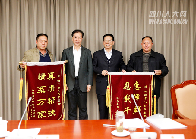 番山村、月明村党支部书记分别代表村民向省人大常委会赠送锦旗