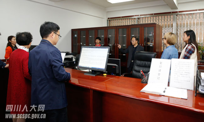 新华主任听取了秘书处关于机要室改造后的工作运转情况和公文流转系统自主研发拓展升级的情况报告,并亲自试用了机要文件领取指纹录入系统和人脸识别系统。新华主任对机要室工作予以充分肯定,并对文件收发、办理、督办及机要保密工作提出了新要求;在机关文印室,新华主任了解了方正排版印刷系统的安装、使用和印制过程,查看了现有文印设备,对其中硬件老化、零件破损、影响文印效率的设备更换和维修提出建议,对在使用方正排版印刷系统容易出现的文件质量问题提出了指导意见。