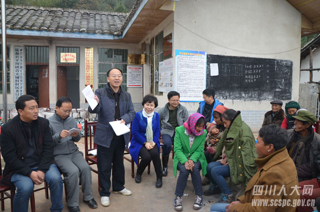 座谈会上,朱新华向围坐在一起的彝族贫困群众和村社干部热情洋溢地宣讲党的十八届六中全会精神和省委决策部署等,并把全会公报单行本发放到在场的每一个人手中。朱新华表示要锁定“两不愁、三保障”和“四个好”目标,商议脱贫措施,对标补差、精准施策,确保如期现实脱贫任务。他勉励青天铺村的干部群众要在县委、县人大、县政府领导下,在社会各界的关心支持下,团结一致,抢抓机遇,艰苦奋斗,早日建好富裕、文明的新家园。