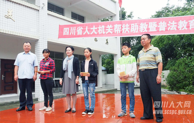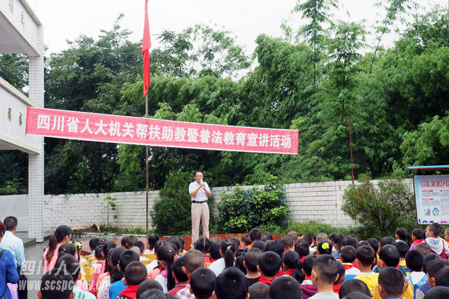 在开学第一天,9月1日上午,四川省人大常委会办公厅组织部分离退休老同志赴眉山市仁寿县识经镇白凤九年制学校开展帮扶助教活动暨普法教育宣讲活动。