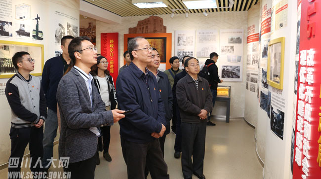 11月14日至15日,为认真学习贯彻党的十九大精神,深刻领会习近平新时代中国特色社会主义思想,进一步坚定理想信念、提高党性修养、增强“四个意识”,省人大常委会办公厅人事处党支部和财务处党支部组织全体党员赴武胜县红岩英雄文化陈列馆、武胜党史馆、杨益言旧居陈列馆参观学习,开展以“不忘初心、牢记使命”为主题的党日活动,重温入党誓词,弘扬红岩精神。省人大常委会秘书长焦伟侠以普通党员身份参加主题党日活动。