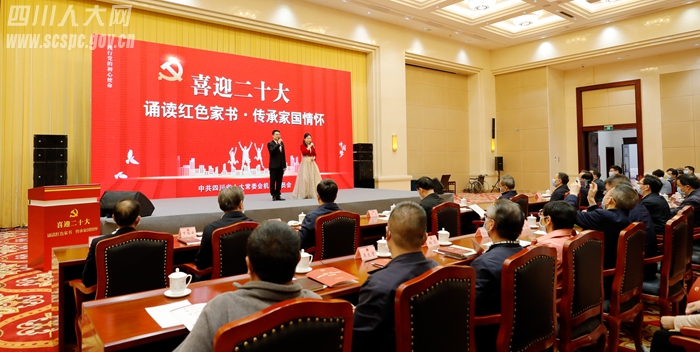 10月10日下午,在党的二十大即将召开的重要时刻,省人大常委会机关组织开展“喜迎二十大•诵读红色家书、传承家国情怀”主题学习活动,通过一封封红色家书,回望革命先辈的创业之艰、忠诚之魂、理想之光,激发勇于担当的使命感,以更加昂扬姿态迎接党的二十大胜利召开。省人大常委会党组书记、副主任王宁,省人大常委会党组成员、副主任邓勇、王一宏、彭琳、王菲,省人大常委会党组成员、秘书长,机关党组书记贾瑞云参加活动。