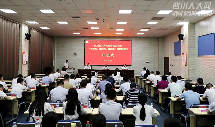 为全面贯彻落实党的二十大精神、深入开展学习贯彻习近平新时代中国特色社会主义思想主题教育,6月25日至6月30日,四川省人大常委会机关在河南焦裕禄干部学院举办“强党性、提能力、建新功”专题培训班,10名厅级干部和48名机关干部一起走进兰考,走进焦裕禄干部学院,重温焦裕禄事迹,学习传承焦裕禄精神,在这里共同接受了一场震撼心灵的党性教育和为民情怀的精神洗礼。省人大常委会党组书记、副主任王雁飞在开班式上作了学习动员,省人大常委会党组成员、秘书长、机关党组书记贾瑞云主持开班式。