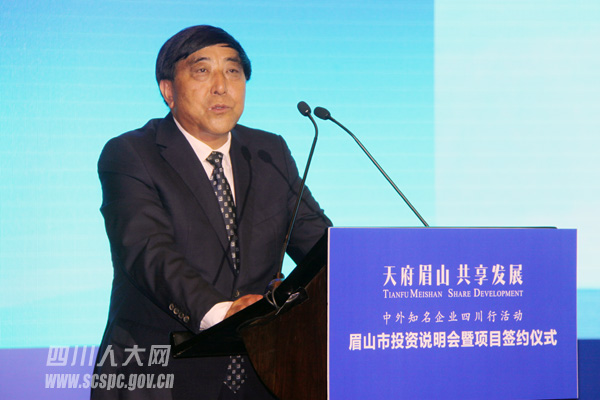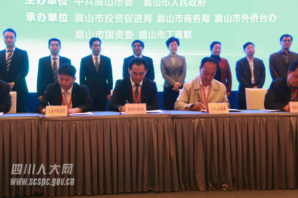 4月22日,在成都举行的“天府眉山 共享发展”——中外知名企业四川行眉山市投资说明会暨项目签约仪式上,集中签约重点项目12个,合同总额465.8亿元。省人大常委会副主任、党组副书记张东升出席签约仪式并致辞。