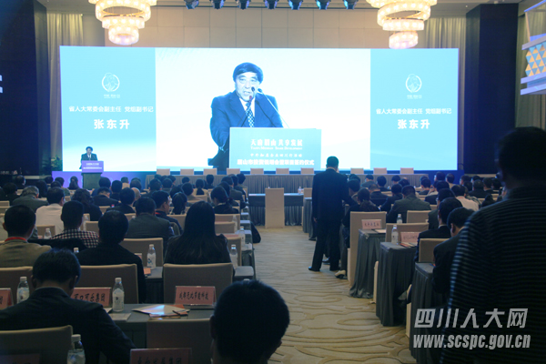 张东升在致辞时指出,四川自古就享有“天府之国”的美誉,是中国西部的资源大省、经济强省,是国家西部大开发的核心区域。长期以来,四川坚决贯彻中央一系列决策部署,凝心聚力、聚精会神致力于扩大对外开放,努力营造良好的创业投资环境。据最新数据,四川目前与世界100多个国家和地区建立了经贸合作关系,在川世界500强企业超过280户。最近5年,全省累计引进国内省外资金约3.8万亿元,利用外资连续3年突破100亿美元。当前,四川正抢抓国家新一轮西部大开发、长江流域经济带、一带一路等重大战略机遇,大力实施多点多极支撑、两化互动统筹城乡、创新驱动“三大发展战略”,强力推进“两个跨越”,全省经济社会保持了良好发展态势。潮平两岸阔,风正一帆悬。这也为国内外投资者创造了巨大商机,可以说,在川发展大有可为,投资四川正当其时。