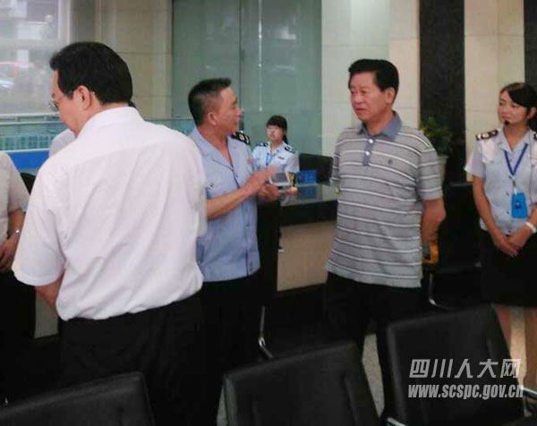 8月26日,省人大常委会副主任刘道平率省“六五”普法检查组赴巴中市检查“六五”普法工作开展情况。省人大常委会副秘书长、依法治省办副主任吕华,省委组织部副巡视员徐云,省司法厅副厅长扎柯等随同检查。图为刘道平副主任一行在巴中市地税局检查。