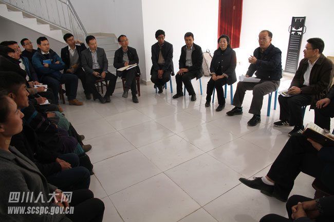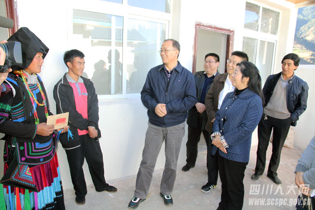 焦伟侠一行来到陈光志联系的青天铺村,实地查看了村活动室、文化室、卫生室建成使用情况和“彝家新寨”建成入住情况,并走访慰问了部分贫困户。通过院坝会的形式,焦伟侠用生动的语言、形象的方式、深入浅出地宣讲了十八届六中全会和省委十届九次全会精神。