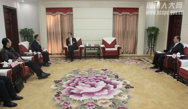1月12日,省人大常委会党组书记、副主任陈光志在省人大常委会机关听取了自贡市第十七届人大常委会主任谭豹的工作汇报。陈光志希望自贡市第十七届人大常委会紧密团结在以习近平同志为核心的党中央周围,在党委坚强领导下,高举中国特色社会主义伟大旗帜,坚定信心,埋头苦干,务实履职,为推进全省“两个跨越”、谱写中国梦四川篇章、夺取全面建成小康社会伟大胜利而努力奋斗。