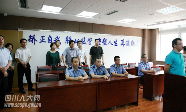 刘道平一行先后深入龙泉驿区洛带镇司法所、西河镇司法所、区社区矫正中心,观看了社区矫正信息化平台演示,体验了成都市电子定位监管+视频点验系统,并随机与社区服刑人员进行了手机视频通话;现场观看了新入矫的社区服刑人员的入矫宣告仪式,感受到了社区矫正刑罚执行的严肃性、规范性和权威性。