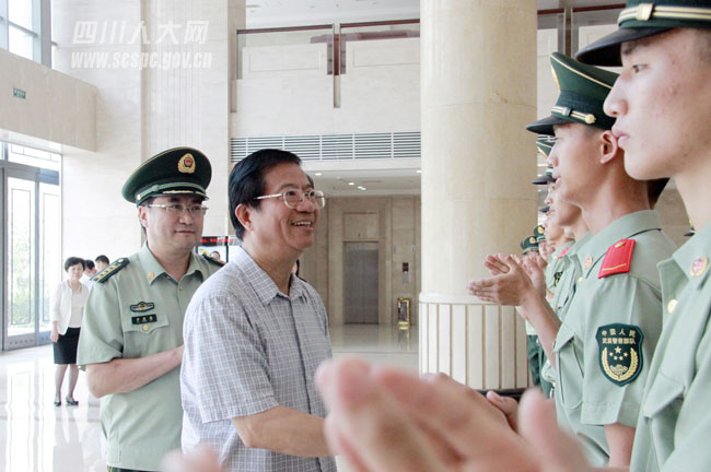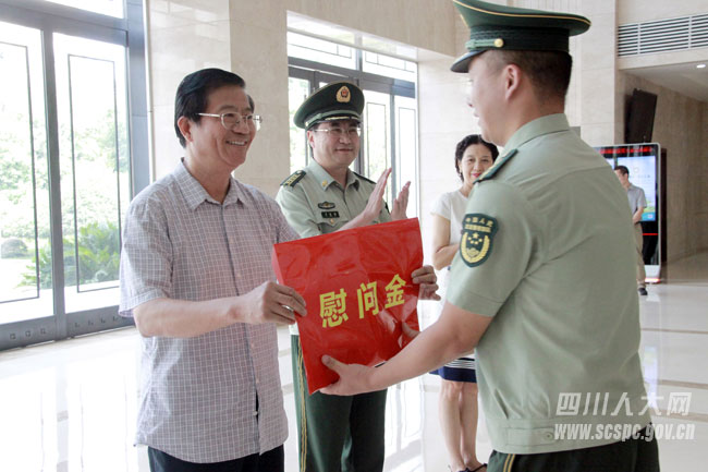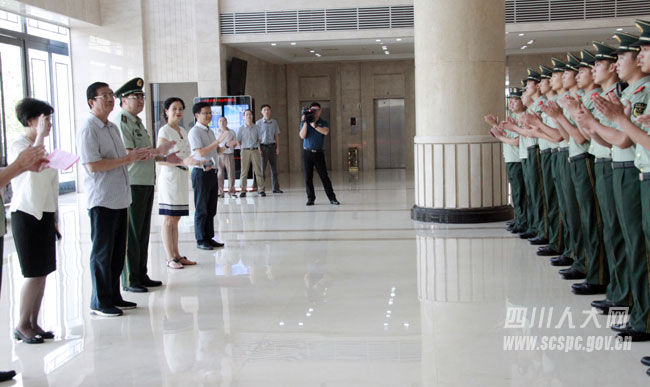 7月27日,在“八一”建军节前夕,省人大常委会副主任彭渝率队看望省人大常委会机关武警中队官兵,并送去慰问金。