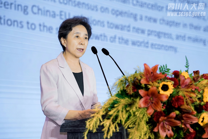 祝春秀在致辞中表示,中德两国关系历经岁月沉淀和风雨考验,并持续不断向前发展。在两国友好的大背景下,四川与德国高层互访频繁,经贸合作日益密切,友好交流更加深入。她指出,随着中欧班列(杜伊斯堡—成都)蓉欧速达专列首发仪式在杜伊斯堡港举行,为川德深化经贸合作提供了新的快捷通道,期待谱写川德友好交流和互利合作新篇章,共同推动中德全方位战略伙伴关系不断取得更大发展。