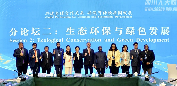 祝春秀在主旨发言中介绍了践行习近平生态文明思想的“四川实践”,重点阐述了四川在筑牢江河上游生态屏障、发展清洁能源、建设公园城市、推进科技赋能生态治理、生态环保和绿色发展国际合作等方面的做法和成效。希望与会各方加强合作,共创地球美好家园。欢迎与会嘉宾到“锦绣天府•安逸四川”走一走、看一看,感受中国式现代化的万千气象。