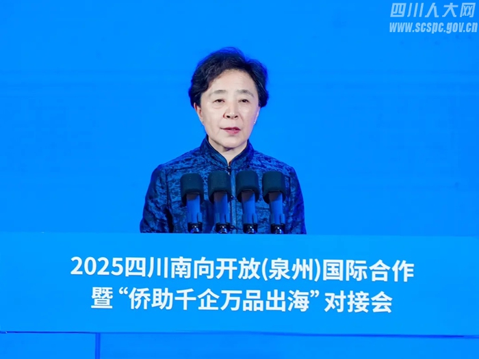 近日,2025四川南向开放(泉州)国际合作暨“侨助千企万品出海”对接会在福建泉州举行。省人大常委会副主任祝春秀出席对接会并致辞。