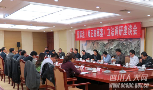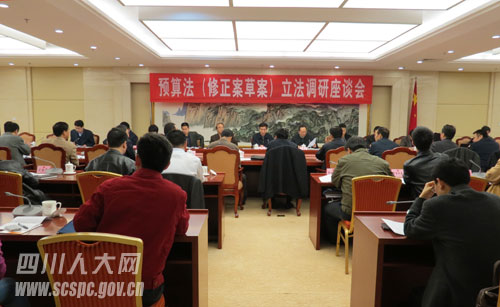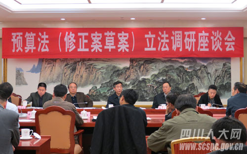 30日下午,调研组与省财政厅、成都市财政局、郫县财政局、成华区财政局、四川发展(控股)有限责任公司的主要负责同志对各级政府分设四项预算、部门预算公开、部门预算编制等情况进行了深入的探讨和交流,并听取了对预算法(修正案草案)的意见。省人大常委会副主任彭渝出席并主持了座谈会。