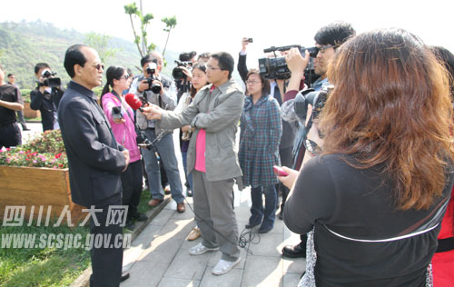 全国人大城环资委副主任委员张文台在考察向家坝发电站后接受媒体采访