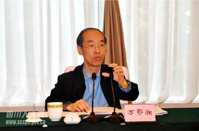 近日,全国人大常委会副委员长、民革中央主席万鄂湘来川调研法治建设工作,听取了省依法治省办、省政府办公厅、省委政法委、省委宣传部等部门关于我省推进依法治省和法治政府建设的工作情况汇报。万鄂湘充分肯定了四川依法治省工作取得的成效,认为近年来四川省委深入贯彻中央依法治国的决策部署,高度重视制度建设并狠抓落实,有力有序推进法治建设,某些方面走在了全国前列并具有重要的示范效应。万鄂湘还对四川的法治宣传、设区的市立法工作、法治社会建设示范创建及评价体系等工作提出了要求。