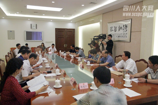 省十二届人大常委会第三十五次会议邀请成都市温江区、宜宾市高县、巴中市平昌县、雅安市荥经县、阿坝州阿坝县、甘孜州九龙县、甘孜州稻城县、凉山州德昌县等8名县级人大常委会主任,绵阳游仙区石马镇、广安岳池白庙镇、眉山市仁寿县虞丞乡等3名乡镇人大主席全程列席会议。7月26日下午,省人大常委会办公厅组织召开座谈会,听取列席会议同志意见建议。