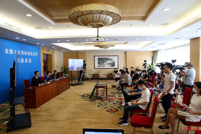 ▲全国人大常委会办公厅举行集体采访