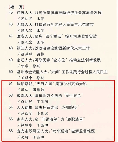近期,四川省多项人大工作好做法“中榜”《中国人大》杂志,并在全国人大常委会官方微信公众号、中国人大网推送。