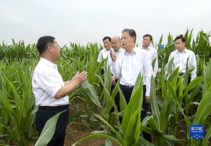 6月6日至9日,中共中央政治局常委、全国人大常委会委员长赵乐际在四川调研,并率全国人大常委会执法检查组检查种子法实施情况。这是8日,赵乐际在四川省农科院现代农业科技创新示范园区考察科研育种和种质资源情况。新华社记者 李涛 摄