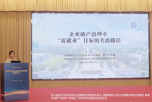 西南财经大学党委书记赵建军表示,党的十八大以来,以习近平同志为核心的党中央着眼于国家长治久安、人民安居乐业,完善社会治理体系,推动社会治理现代化取得重大成就,续写了社会长期稳定奇迹。党的二十大将“完善社会治理体系”纳入推进国家安全体系和能力现代化总体格局进行部署,提出“健全共建共治共享的社会治理制度,提升社会治理效能”,并在推进全面依法治国部署中提出“推进多层次多领域依法治理,提升社会治理法治化水平”,为推动社会法学研究指明方向、明确任务。本次研讨会聚焦“新时代社会治理的社会法构造”主题,具有鲜明的问题导向和时代特征,对于促进法学交叉融合、推动社会治理法治化水平具有重要意义。长期以来,学校高度重视法学学科建设和法学人才培养。四川省法学会劳动和社会保障法学研究会十余年来在创始会长章群教授带领下,以加快推进中国特色社会主义法治体系建设为使命,聚焦习近平法治思想、中国式现代化与劳动和社会保障法治发展、实施积极应对人口老龄化国家战略等重大理论与实践问题加强研究阐释、积极建言献策,在学术研究、社会服务、人才培育等方面取得突出成绩,学校将一如既往支持劳动和社会保障法学研究会建设和发展,为推进社会治理现代化、建设社会主义法治国家贡献智慧和力量。