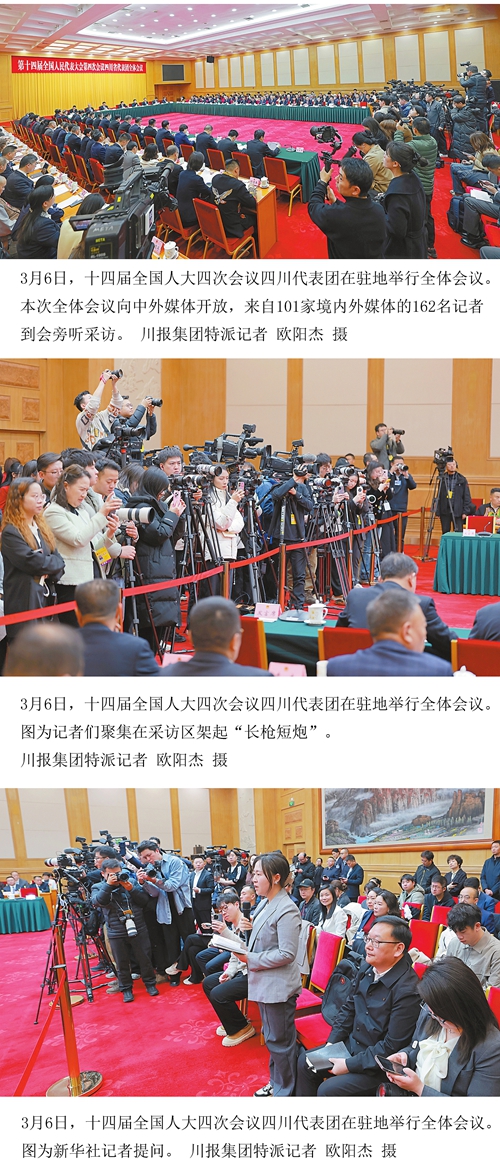 3月6日上午,十四届全国人大四次会议四川代表团举行开放团组活动,接受来自中外记者的提问。